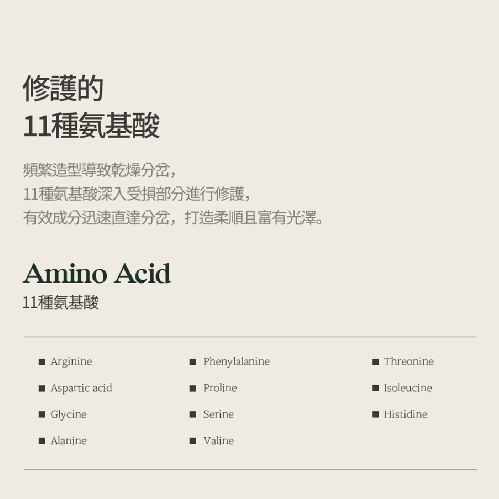 舒緩頻繁造型導致的乾燥分岔,氨基酸迅速直達髮梢,打造保濕屏障。
