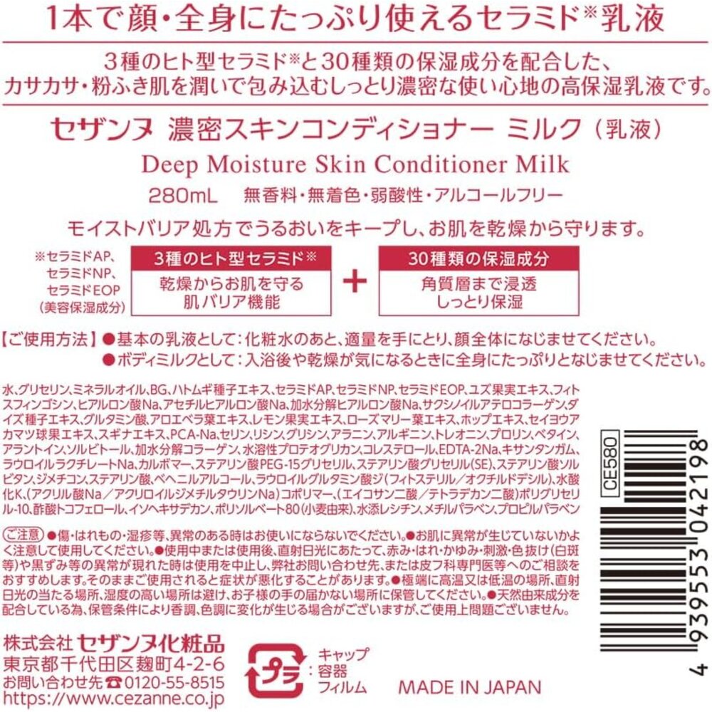 CEZANNE 高效保濕乳液 280ml