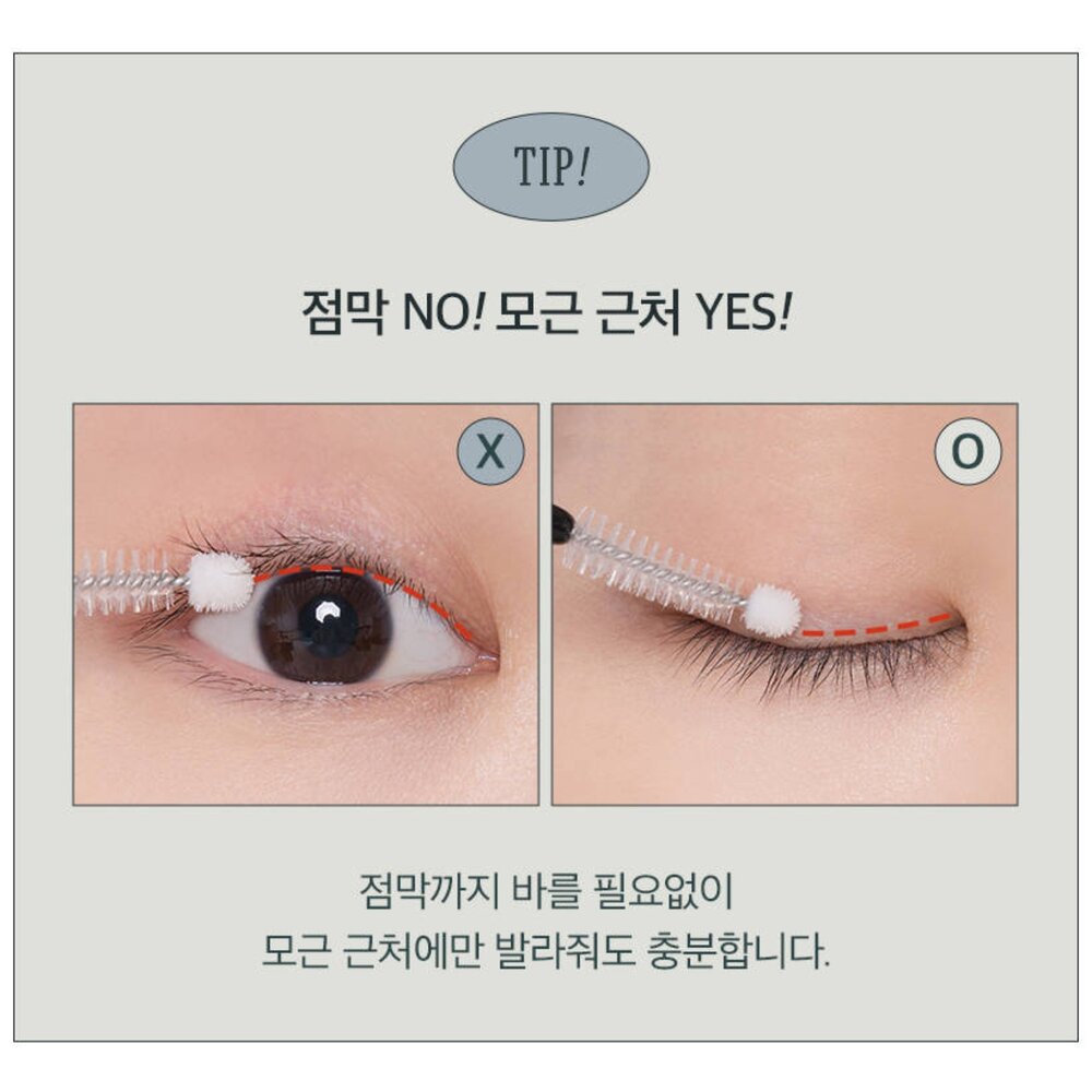 閉上眼睛,使用球型刷頭,從睫毛根部輕柔塗抹,避免接觸黏膜。
