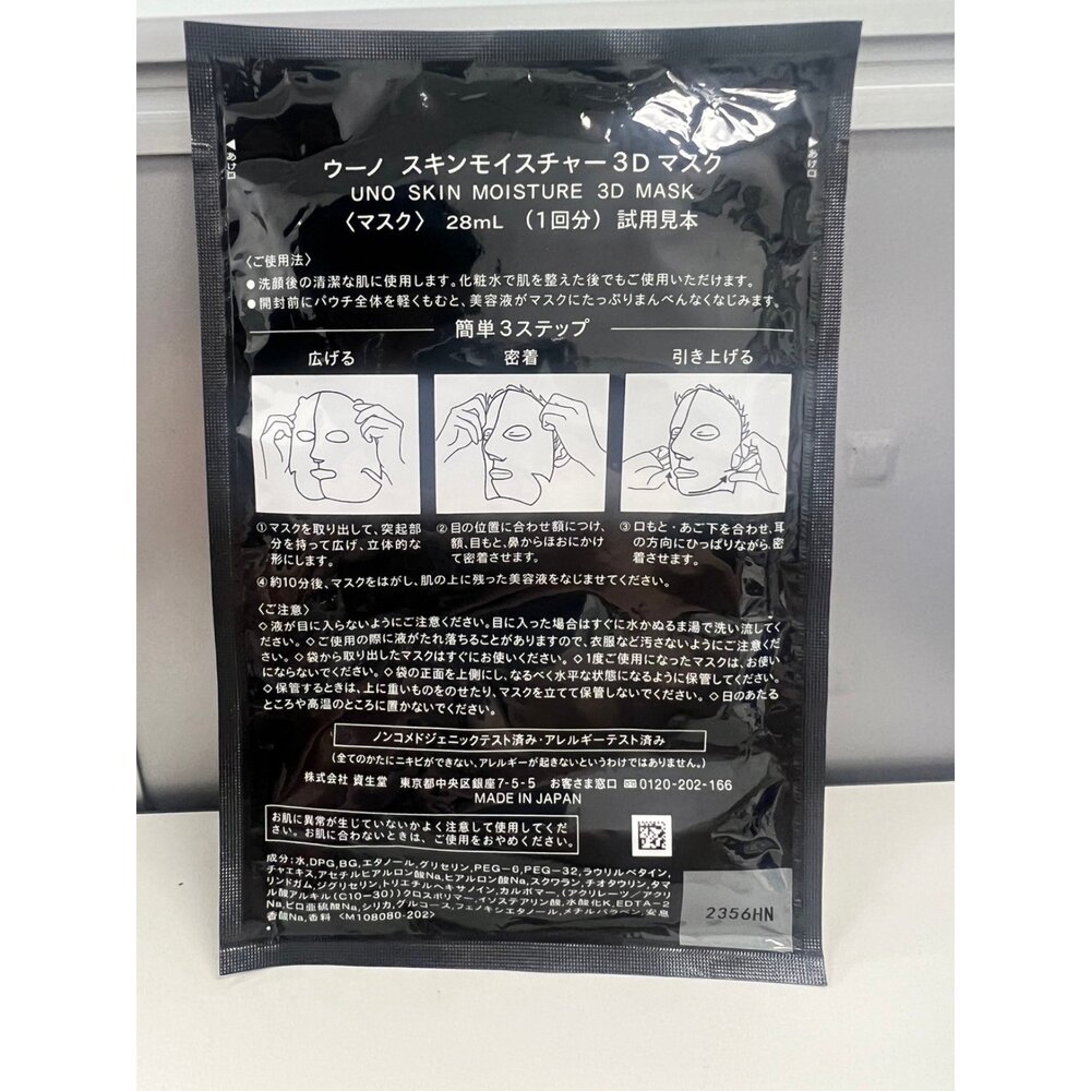 HISEIDO UNO 男士保濕 3D面膜 單片28ML 臉部保養 美容液 肌膚保養 男生用 控油保濕