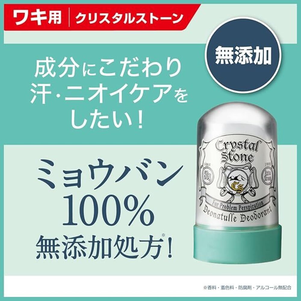 長效防汗抗味,天然明礬石製成,香料、著色、防腐、酒精、薄荷皆無添加,全天保持清爽。