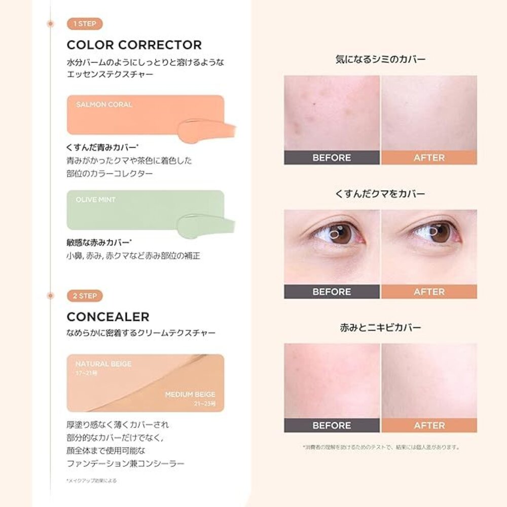 ♡ 兩款都有米膚色,能遮蓋黑眼圈的橙色,遮蓋泛紅的綠色。