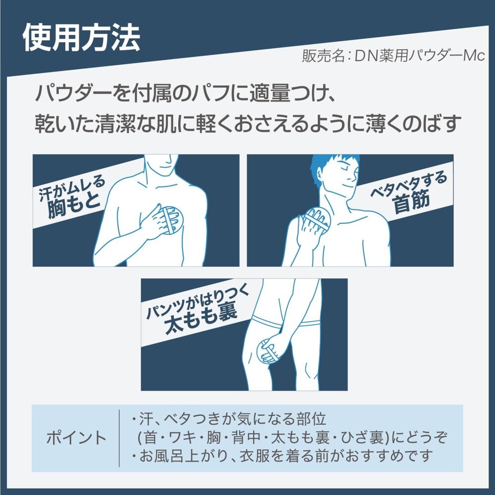 特別推薦於頸部、腋下、胸口、背部、大腿後側、膝蓋後方、腳底等易流汗部位。
