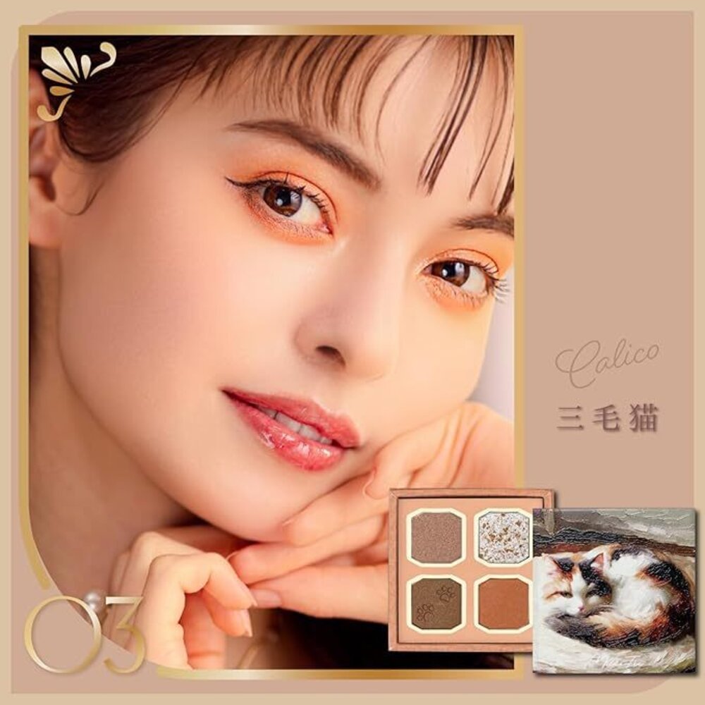 四種貓咪的可愛油畫,再加上超漂亮的眼影色系。