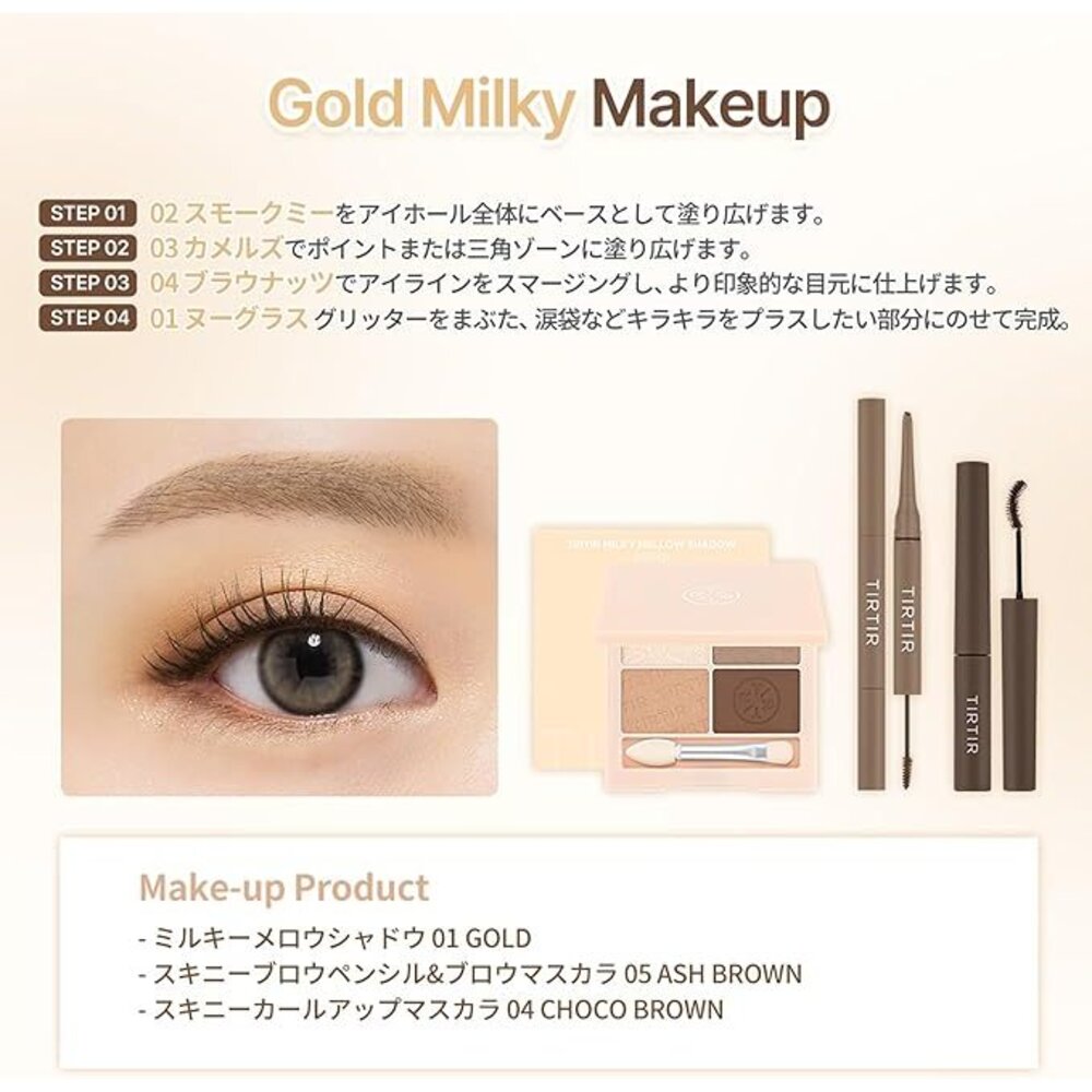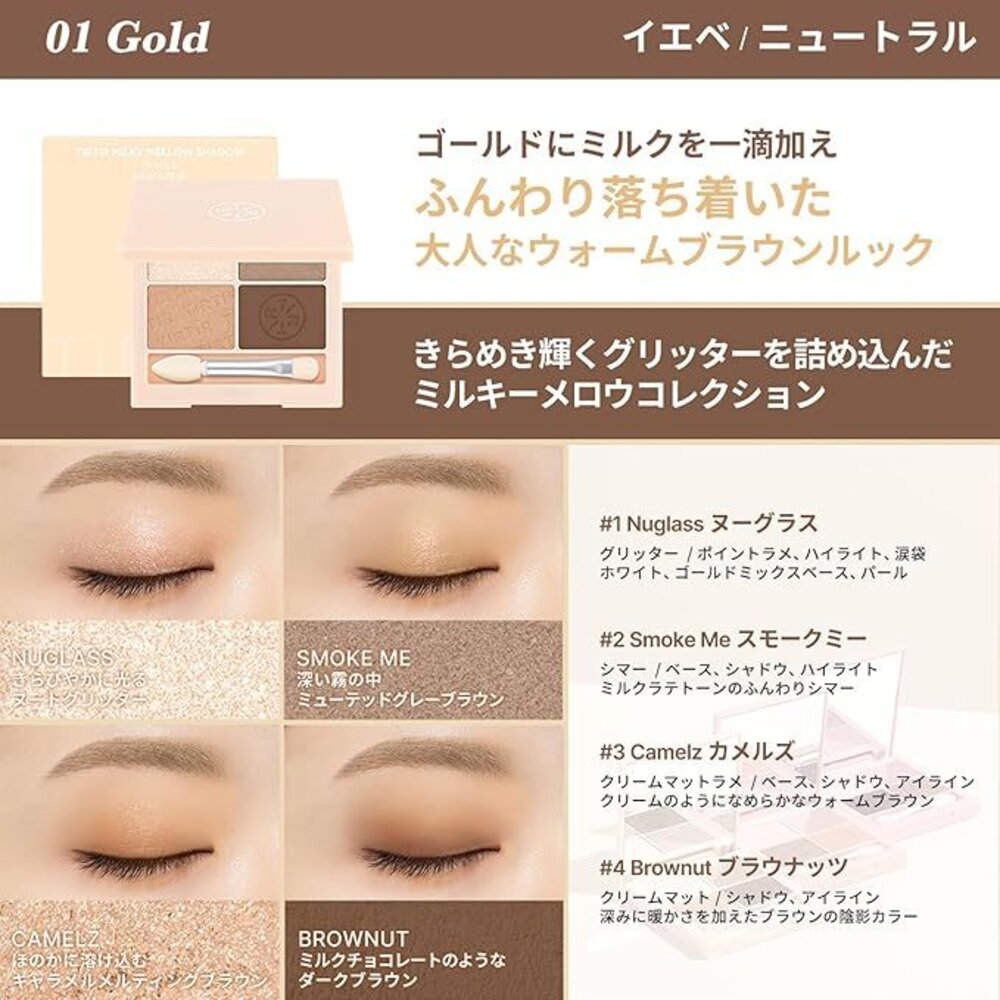 眼影盤以牛奶米色為基礎色調,搭配三種柔和閃亮的配色。