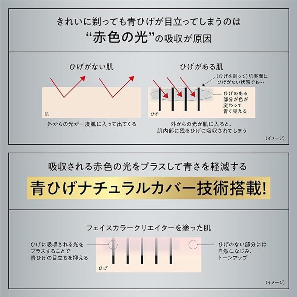 01 自然遮瑕:含膚色校正粒子,抹上肌膚後自然校正膚色,並自然遮蓋鬍渣、黑眼圈與膚色不均等肌膚困擾。