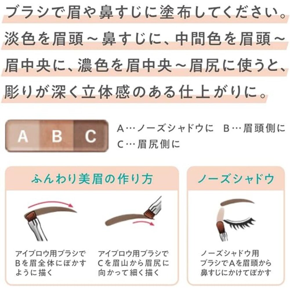 粉狀眉粉,混合三種與肌膚融為一體的顏色漸變,