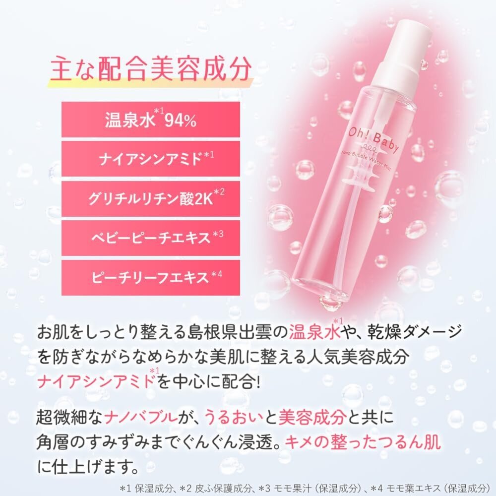 添加滋潤肌膚的日本島根縣出雲溫泉水94%的噴霧型美肌化妝水。