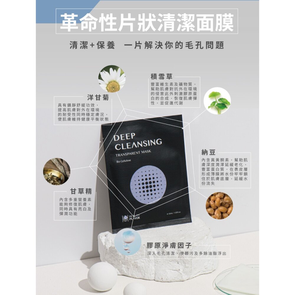 一片深層清潔毛孔內看不見的殘妝、髒污及多餘油脂